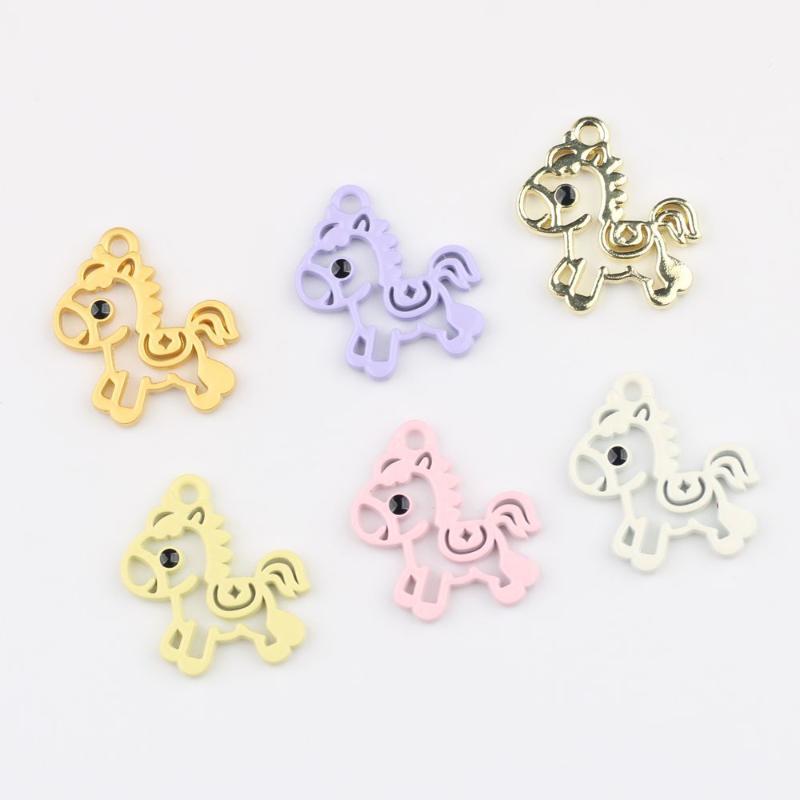 5 Pièces Pendentif Cheval Coloré Creux Charms Minimalistes Alliage Poney Fabrication de Bijoux Boucles d'Oreilles Bracelet Collier Accessoires DIY