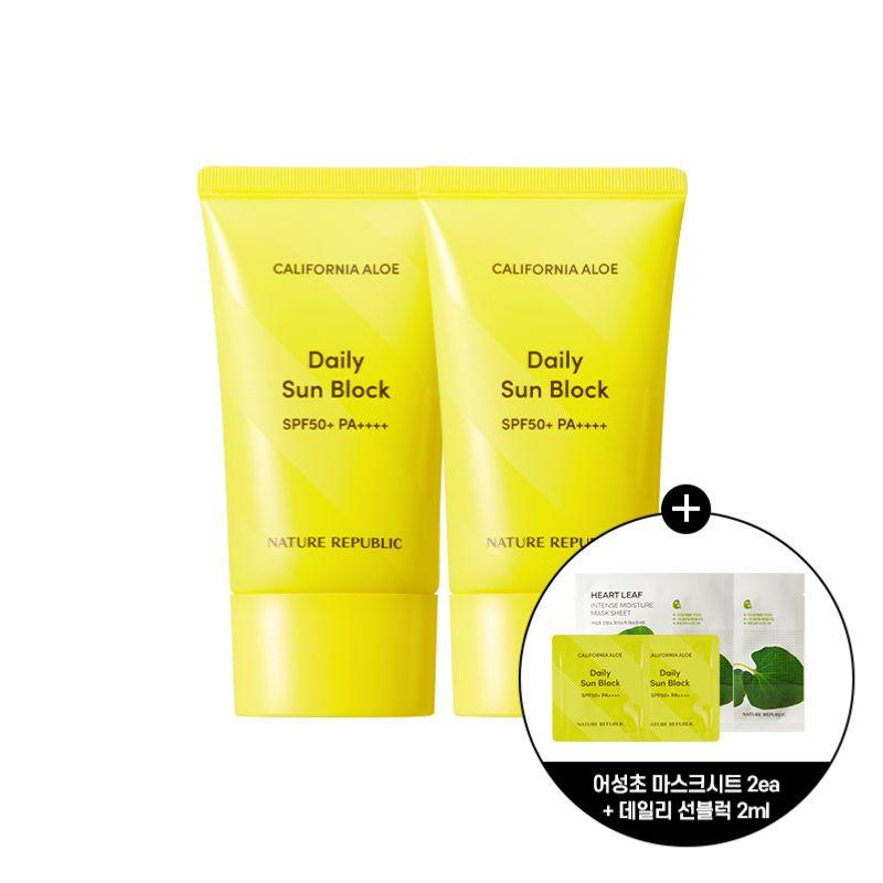 Nature Republic California Aloe Daily Sunblock SPF50+ PA++++ 1+1 Set – UV Protection Face Sunscreen + Free 2ml Sample