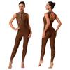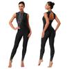 Combinaison de compétition pour femme S-XXL: Combinaison moulante sans manches à dos creux et strass pour gymnastique, yoga, entraînement