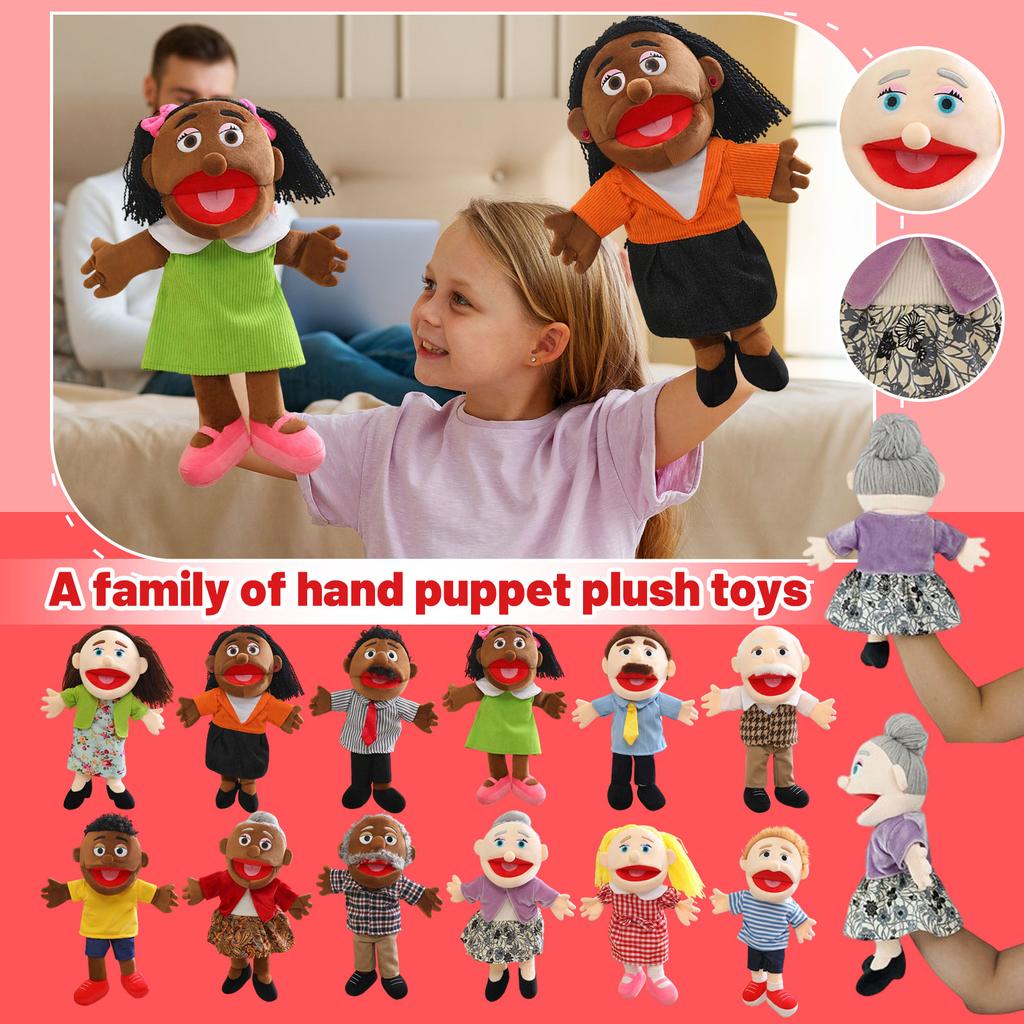 Marionnette à main Family à bouche ouverte pour tout le corps, Jouet en peluche, Marionnette Accessoire de spectacle pour maternelle, Marionnette pour enfants