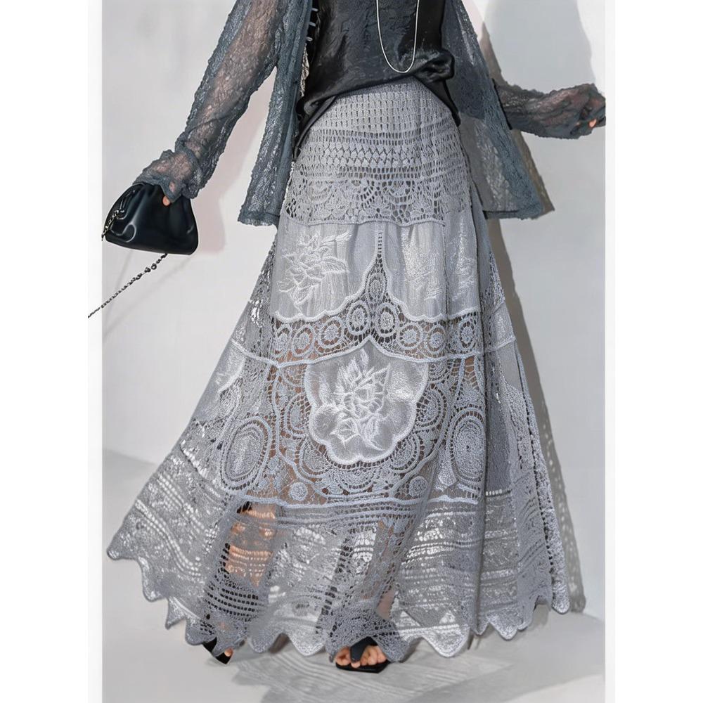 DIMANAF 2026 New Holiday Skirt Women Knitting Lace Solid Hollow Out Sexy Hollow Summer Style Loose Basic Dress