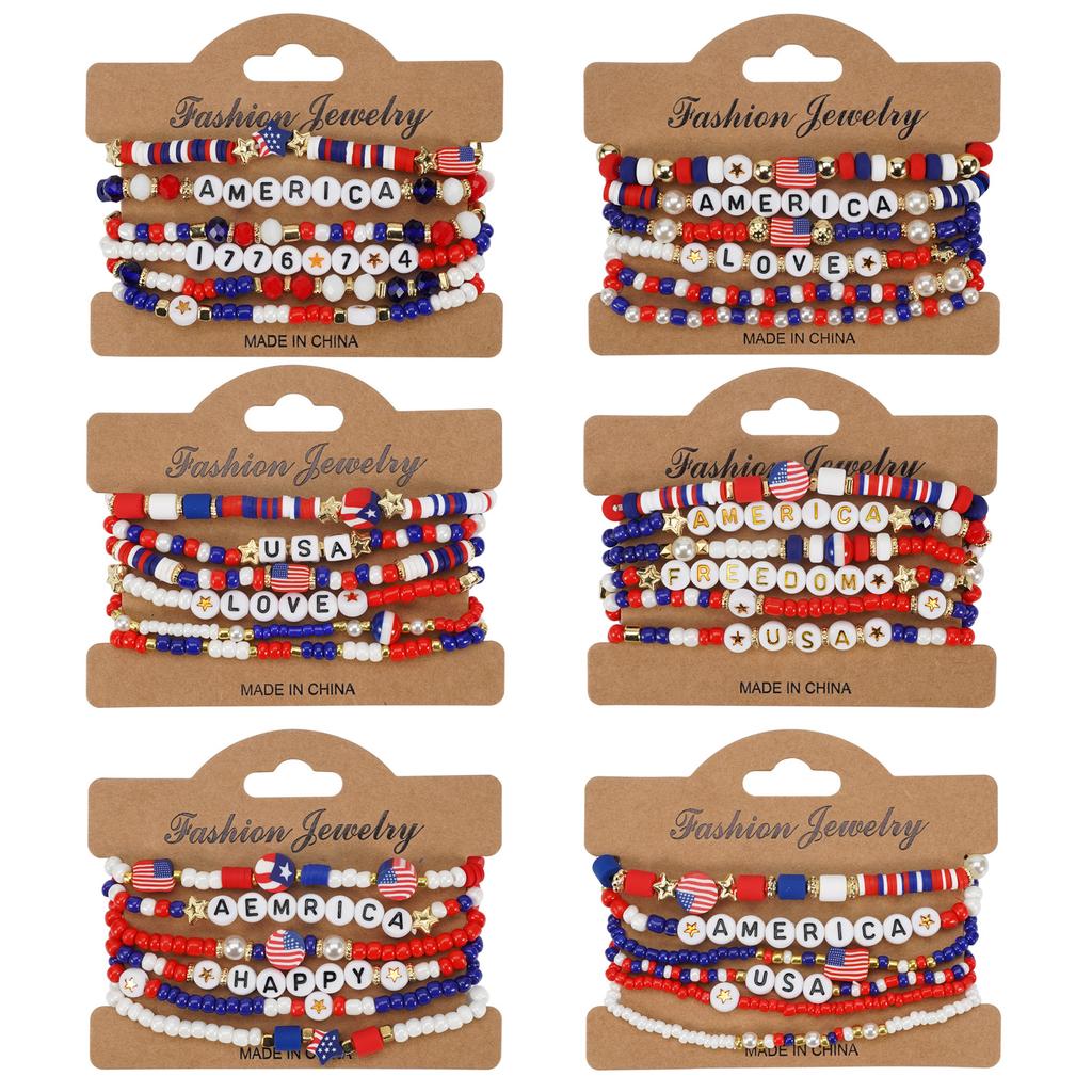 2025 New American Independence Day Bracelet Red White Blue Flag Soft Ceramic Beaded Patriotic