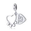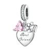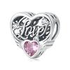 Bamoer Argent 925 Zircon Rose Pendentifs Patte d'Animal Breloques Forme de Cœur Perles Chien pour Bracelet et Collier Femme DIY SCC2434