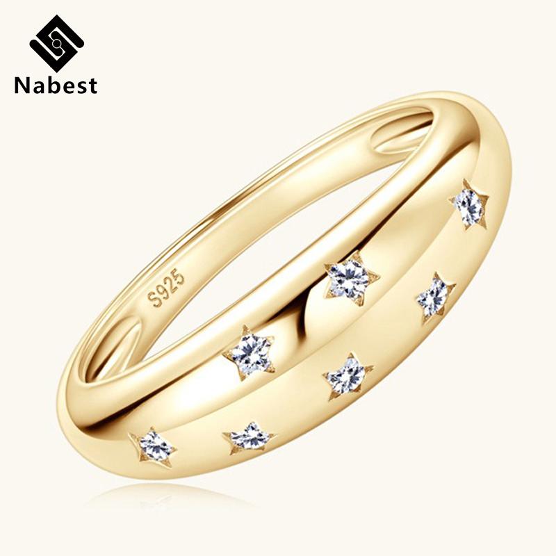 Nabest Design VVS1 D Color 3EX Moissanite Diamond Women Rings 925 Silver Chunky Ring Wedding Bride Gold Plated Jewelry