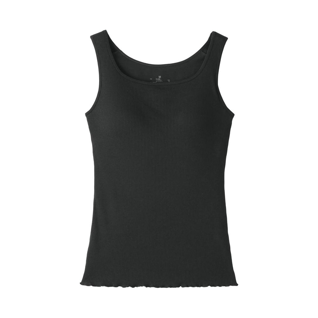MUJI Smooth Ribbed Bra Tank XL Women's Top, FCB57A6S, Black,