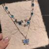 High version does not fade ice crystal gradual change color pearl butterfly necklace women's summer sweet cool advanced sense collarbone chain