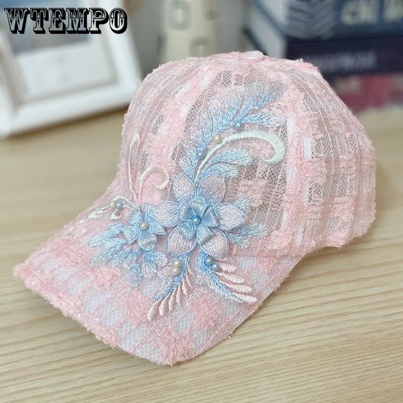 Summer Thin Mesh Baseball Hat Lace Flower Duck Tongue Hat Sunscreen and Sunshade Hat
