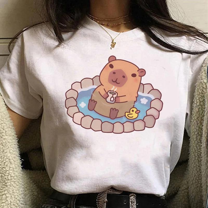 Capybara Streetwear Mode d'Été T-shirt Femme Harajuku Chemise Vêtements Kawaii Manches Courtes T-shirt en Coton Haut Décontracté à Col Rond