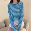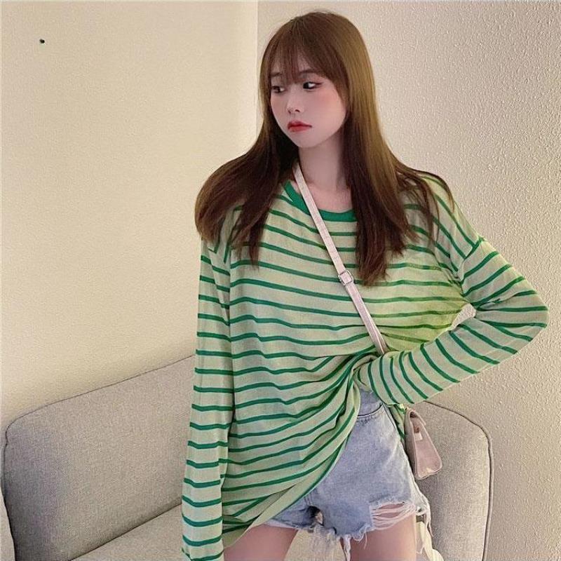 Sun Protection Clothes for Girls New Style Loose Summer Thin Anti-UV Ice Silk Striped Long-sleeved T-shirt Trendy