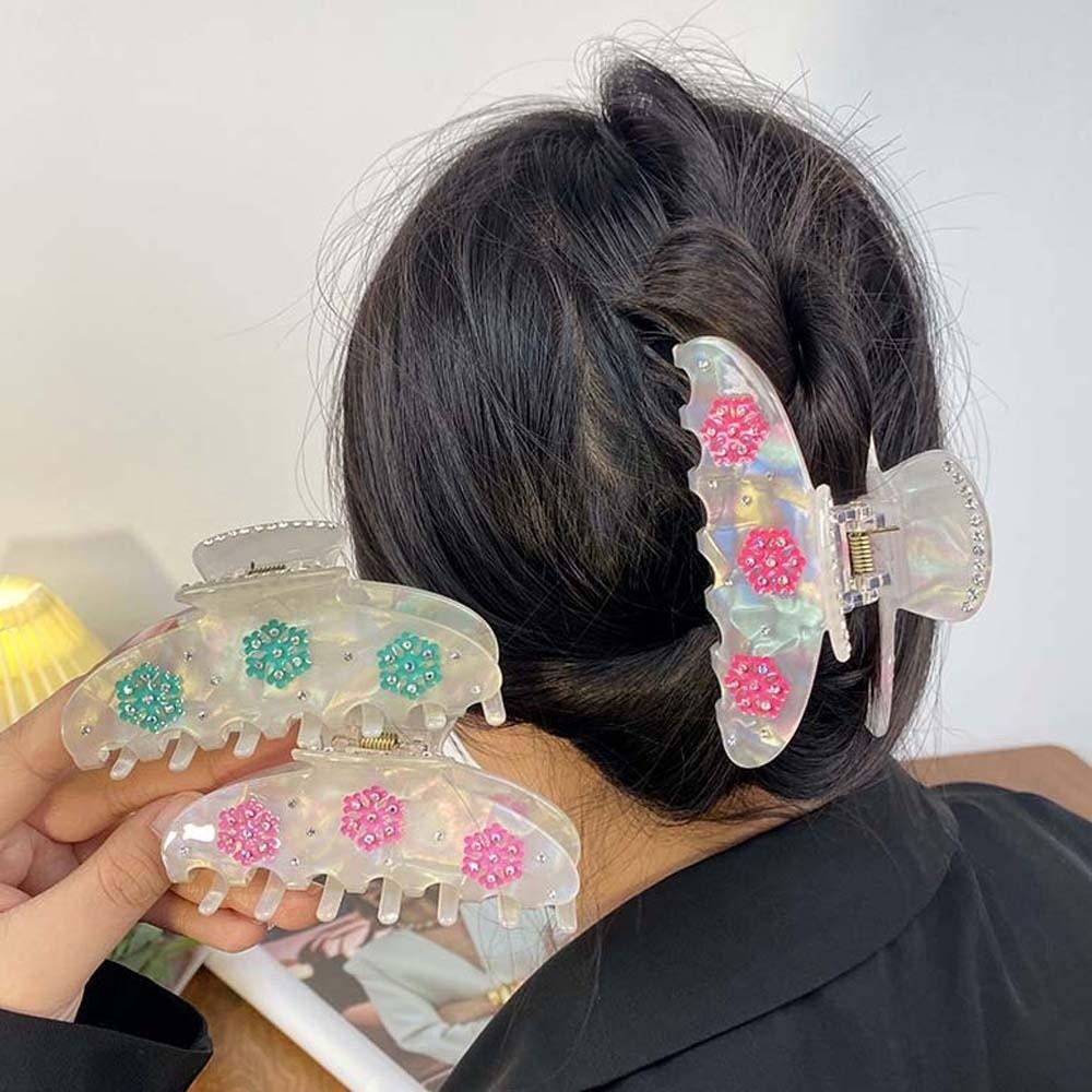 Elegant Iridescent Hair Claw Contrast Color Acrylic Hair Claw Snowflake Shark Clip Headwear