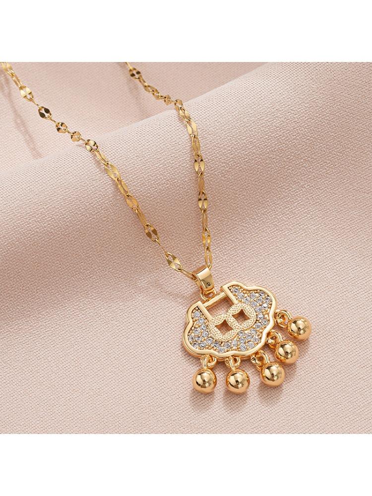 1 Pcs Longevity Lock Titanium Steel Necklace Clavicle Chain Fashionable Best Gift Women's Girls' Elegant Accessories