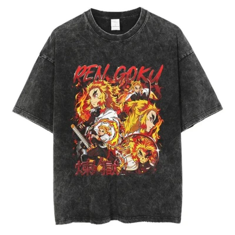 2026 Anime Demon Slayer Retro Washed T-shirt Men's and Women's New Summer Clothing Breathable Fashion Top Streetwear Peripheral Tee