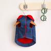 Dog cat clothes autumn and winter thick panda denim cotton-padded jacket velvet warm autumn winter clothing leash dog clothes