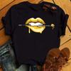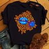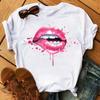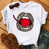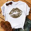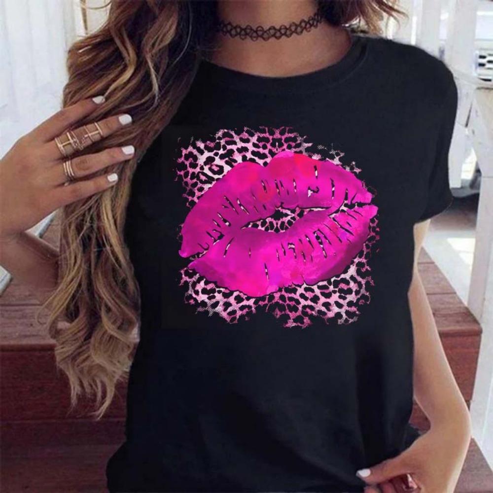 New Women Pink Lips Leopard Graphic T Shirt Casual Fahion O-neck Sexy Black Tees Kiss Lip Funny Girls Tshirt