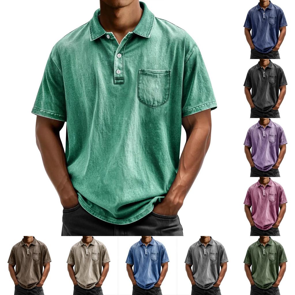 Men's Summer Color Button Short Sleeve Loose Shirt Men's Casual Fashion Tops