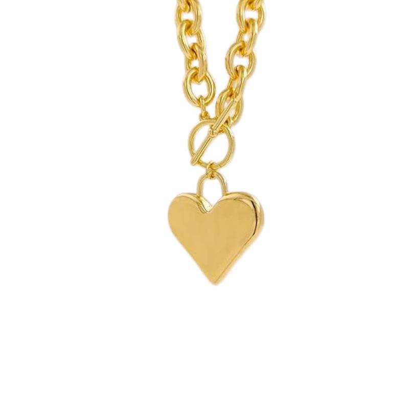 18K Gold Plated Heart-Shaped Pendant Necklace – Hip Hop Style, Fluffy Sweater Chain