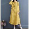 Robe Printemps Femme Vestidos Robe Elbise Lâche Grande Taille Coton Lin Double Couche Longue Robe