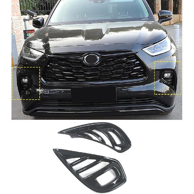 Car Accessories Fit For Toyota Highlander 2020-2023 2024 2025 Exterior Front Fog Lamp Cover Trim Light Panel (Black) ABS 2 PCS
