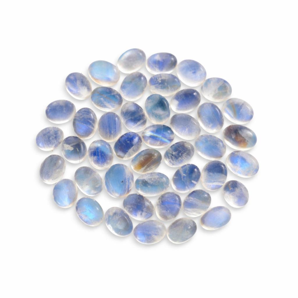 Add a touch of elegance and natural glow to your jewelry designs with this beautiful rainbow moonstone cabochon. Known for its enchanting adularescence, this gemstone displays soft flashes of blue and rainbow hues that create a captivating visual effect.