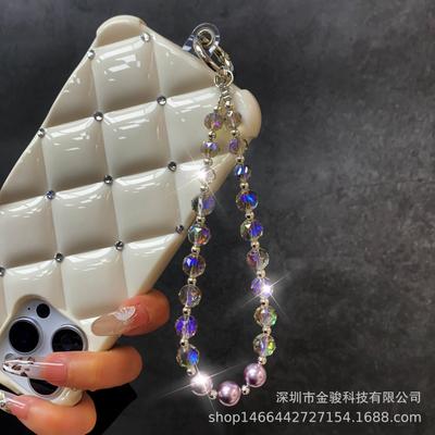 Pearl Short Colored Crystal Phone Strap Crystal Wrist Bracelet Phone Chain Mobile Phone Pendant