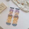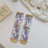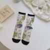 Korean Embroidery Crystal Silk Socks Middle Tube Socks Floral Hosiery Women's Socks Flower Socks