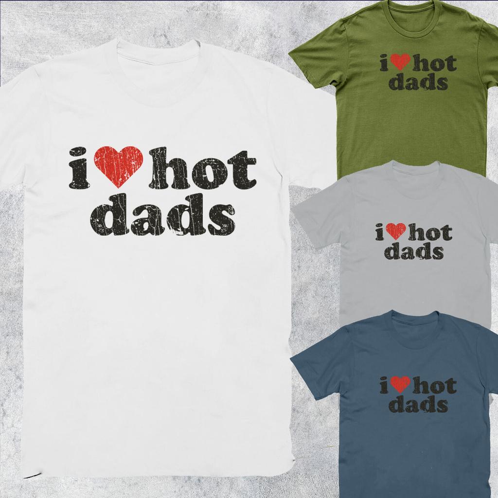 I Love Hot Dads Tee Top Unisex Mens Oversized Womens 100% Cotton T-shirt Mens Womens Tees Tops #D #P1 #PR