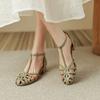 Chaussures Sandale Femme 2026 Nouvelle Femme Filles Beige Nouvelle Été Confort Bas Rétro Bride Arrière Carré Talon Caoutchouc PU Chaussures Femmes