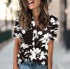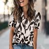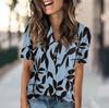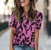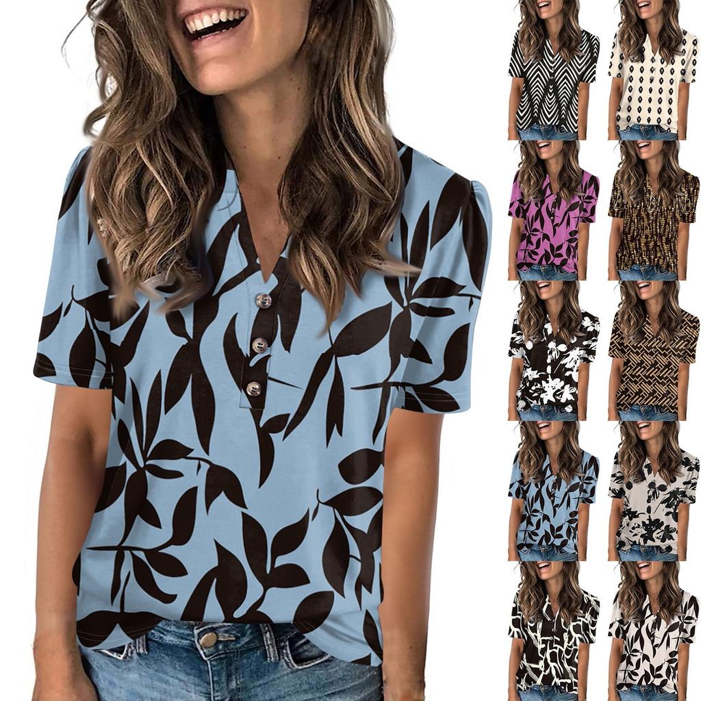 Hauts d'été pour femmes, mode décontractée avec imprimés floraux, col en V, manches courtes, t-shirt boutonné