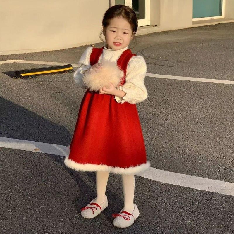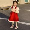 Adorable Korean Children's Red Vest Dress Set For Girls Featuring Cozy Knitted Sweater For Christmas And New Year