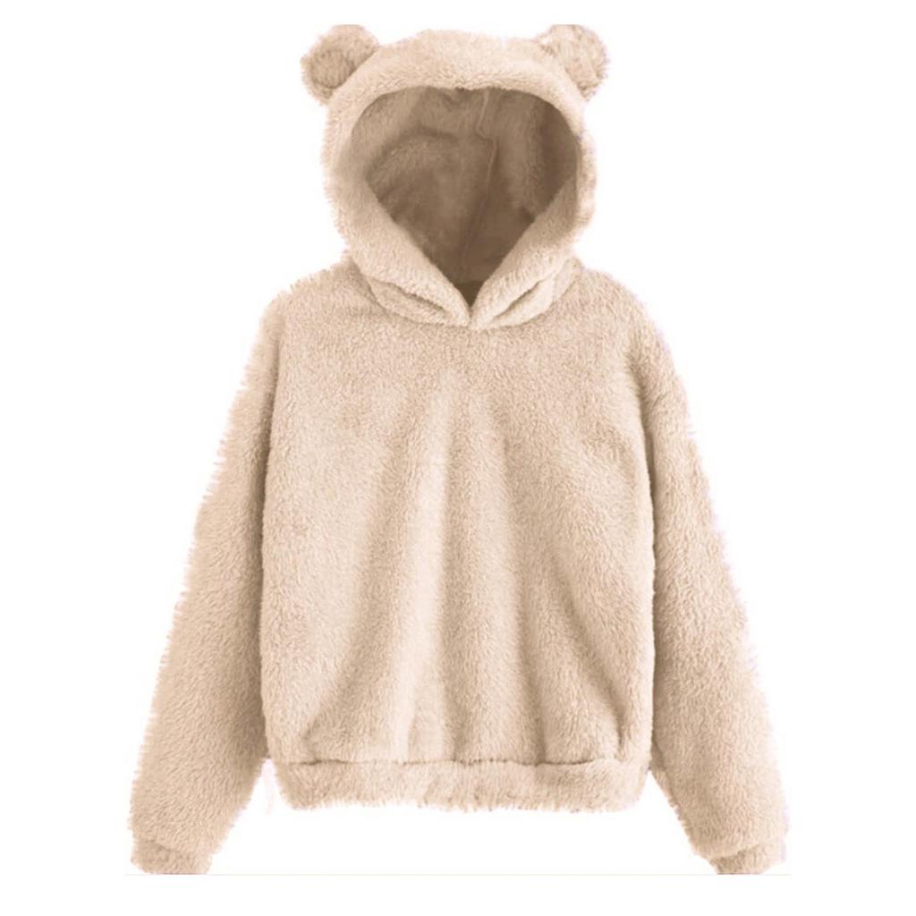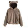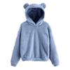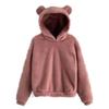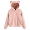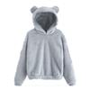 Mode Femme Manches Longues Couleur Unie Polaire Oreilles Capuche Chaud Pull Sweat-shirt