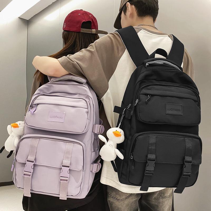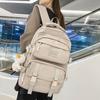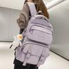Solid color multi-pocket schoolbag female Korean version high school college student backpack light color couple large capacity ins backpack