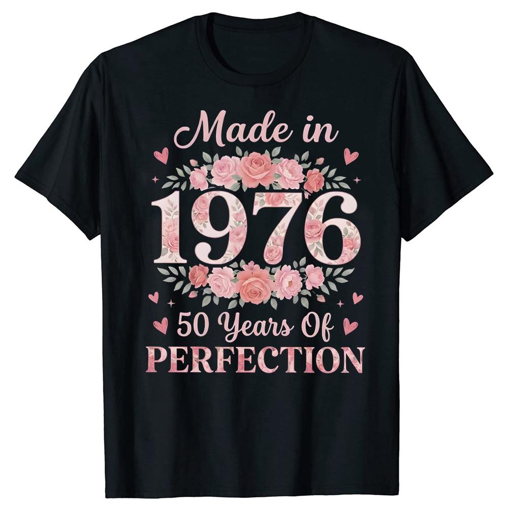 50th Birthday Gift Tees Made in 1976 Apparel Floral Birthday Shirt Birthday Celebration Gift for Wife Mom Sister Women Clothing