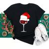 T-shirt Graphique Mignon de Noël Avec des Éléments Amusants de Verre à Vin, Bonhomme de Neige, Chapeau de Père Noël Designs T-shirt Décontracté Élégant à Manches Courtes