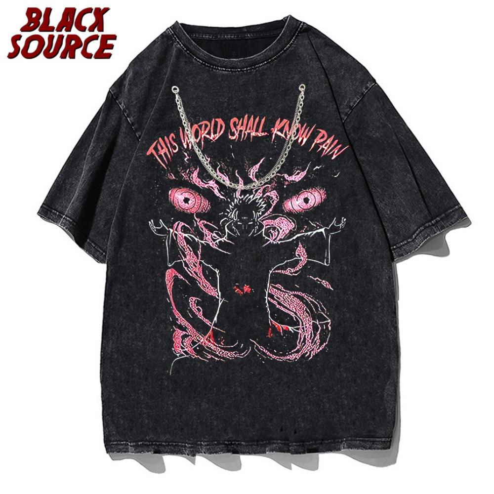 T-shirt Imprimé Anime Pain Noir Hommes Rétro Lavé Coton Hauts T-shirts Harajuku Tshirt Streetwear Hip Hop T-shirts Homme