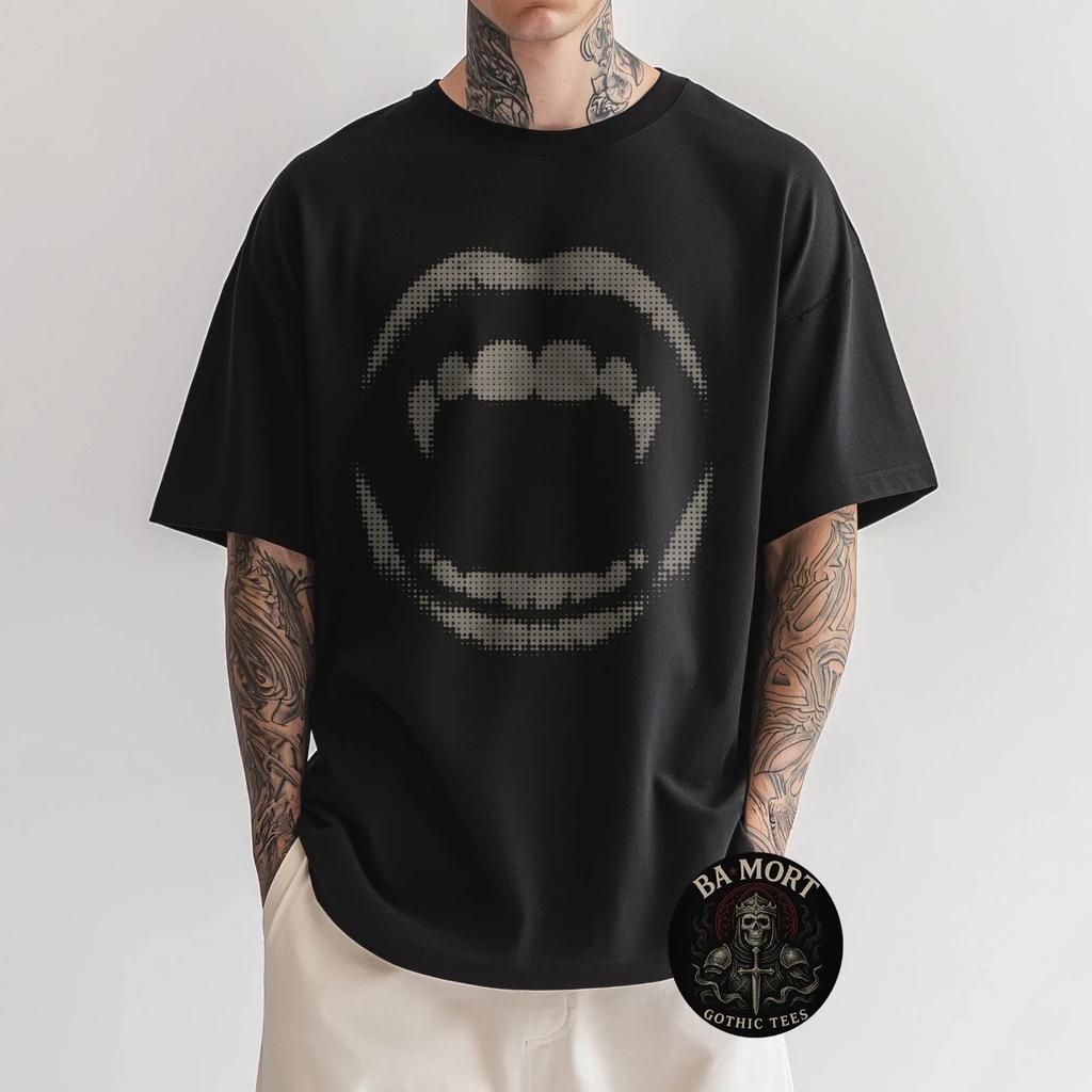 Vampire Fangs Vintage Y2K Grunge Emo Graphic 100% Cotton T-shirt Mens Tees Top