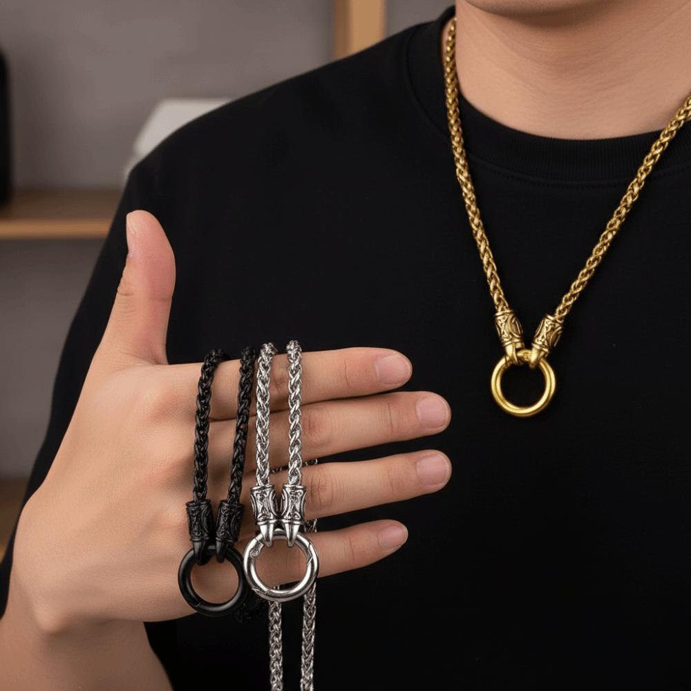 Collier Viking en Alliage de Zinc Fermoir Rond Ouvert Style Ethnique Choker Collier Chaîne Os de Dragon Rétro