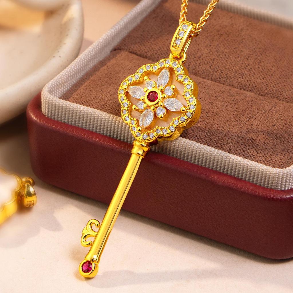 Vietnamese Gold Rhinestone Starry Key Pendant Necklace for Women - High-End Light Luxury.