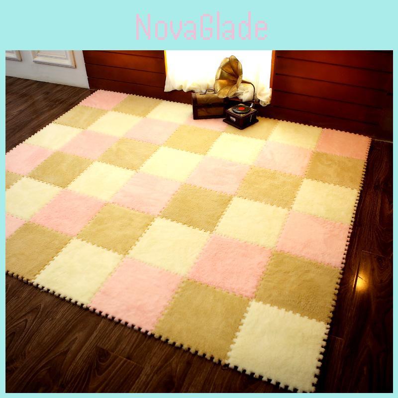 Tout nouveau, Tapis de puzzle / dalles de moquette multicolores de haute qualité avec fourrure en peluche douillette et shaggy