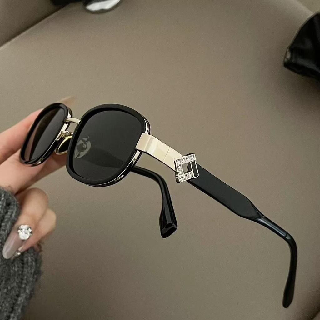 Lunettes de soleil Rétro Européennes Cadre Métallique Ovale Protection UV Strass - 2026 Style Tendance Haut de Gamme