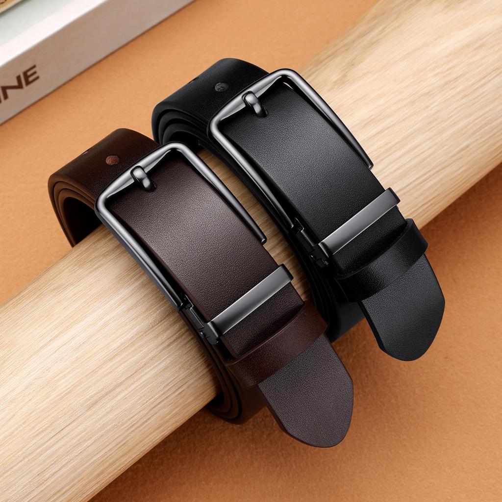 Men's Black Genuine Leather Belt with Pin Buckle, Adjustable, Korean Style.
