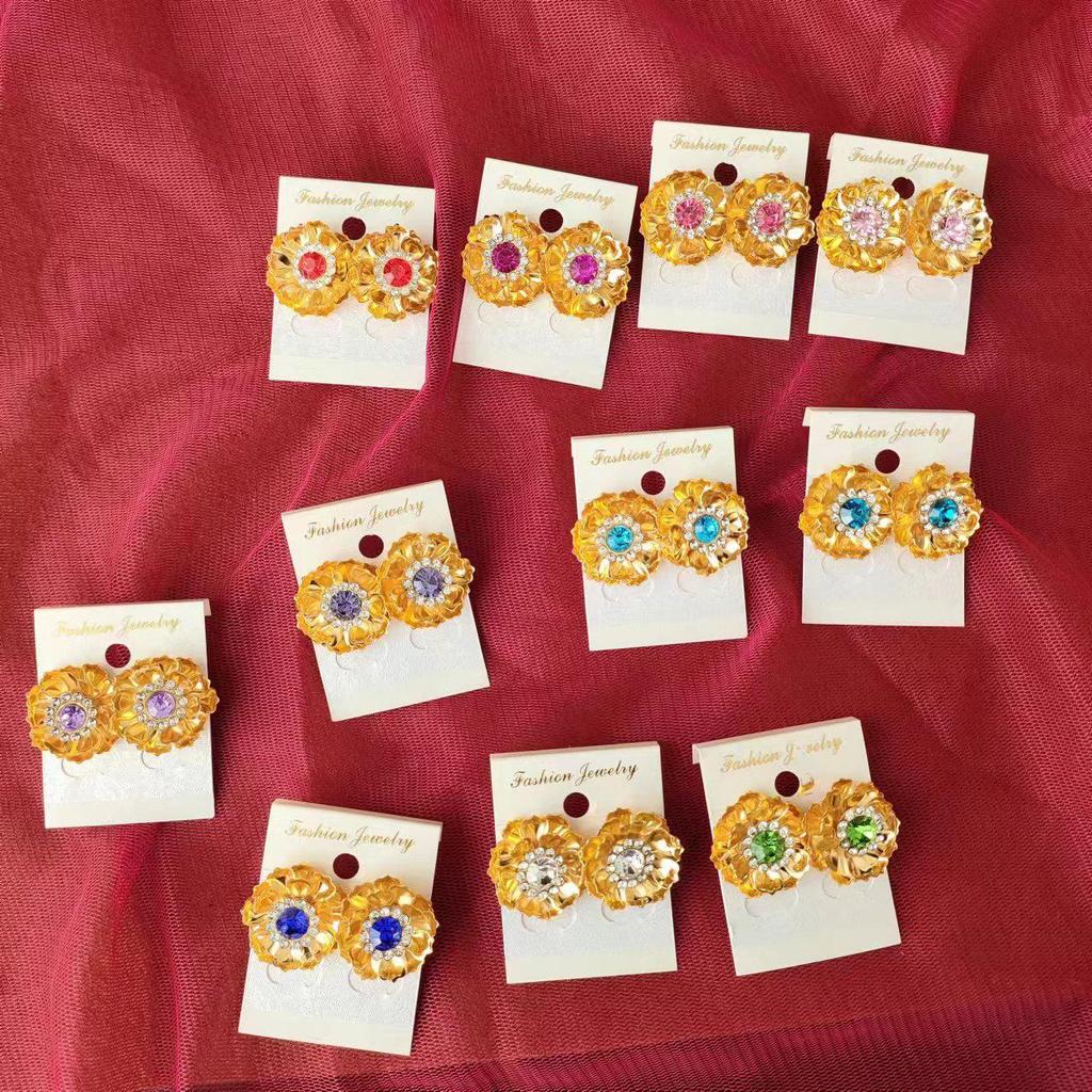 Ethnic Flower Rhinestone Gold Stud Earrings - Versatile and Stylish Accessories
