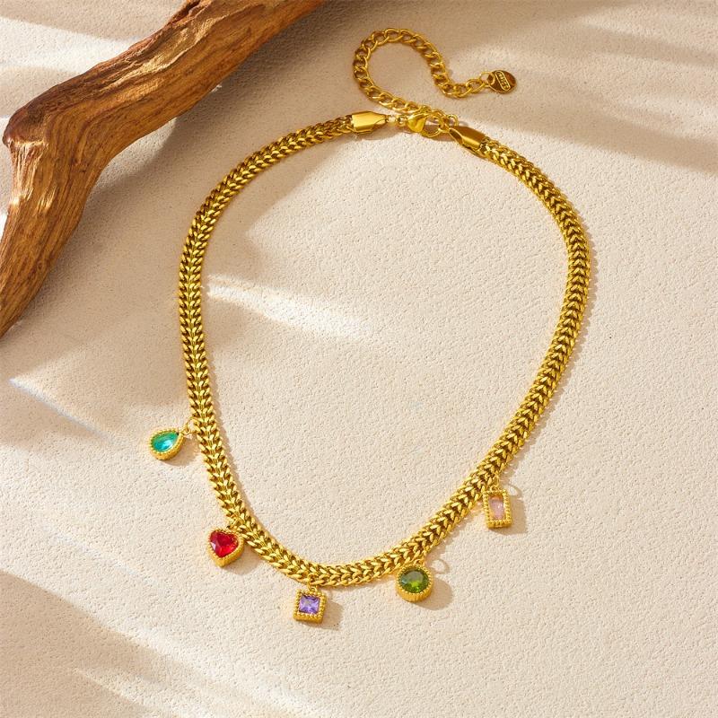 Gold Cuban Link Colorful Gem Charm Necklace – Boho Rainbow Jewelry, Joy Energy Gift for Women