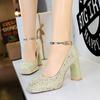 Mode Élégant Femmes Talon Épais Talon Haut Imperméable Plateforme Bouche Peu Profonde Tête Carrée Paillettes Une Bande Unique Mariage