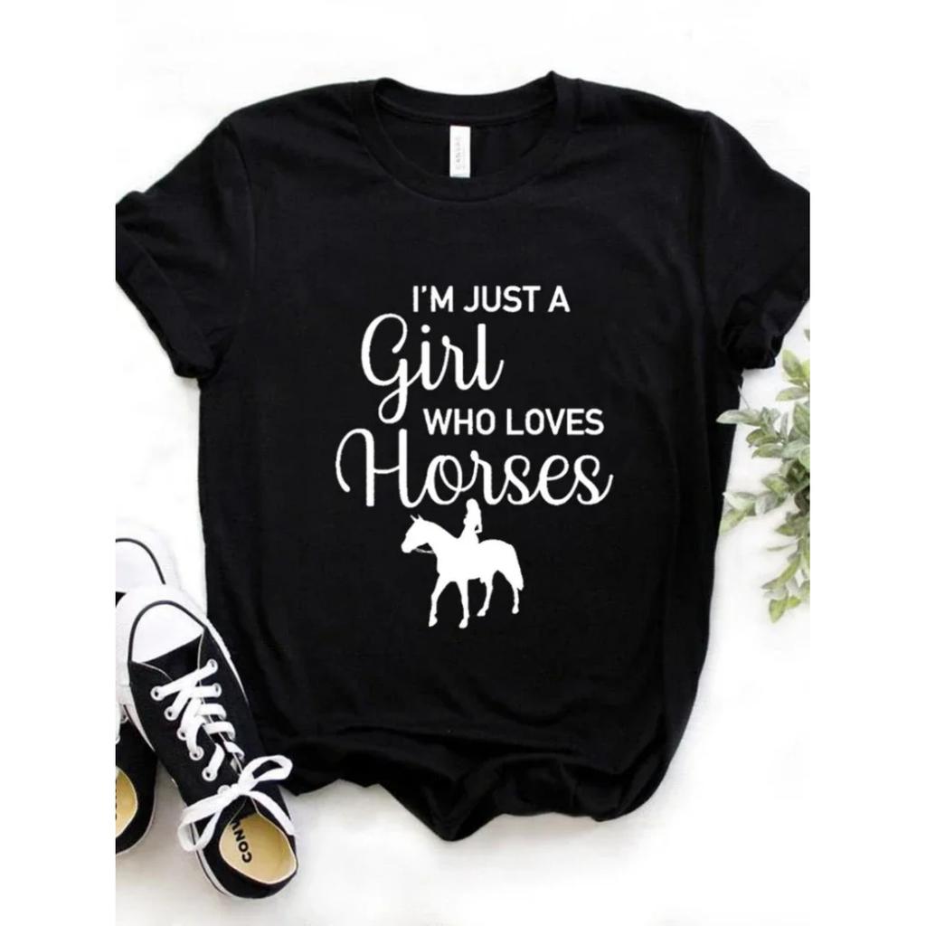 T-shirt Imprimé d'une Fille qui Aime les Chevaux pour Femmes Manches Courtes Col O Ample T-shirt d'Été pour Femmes Hauts Camisetas Mujer