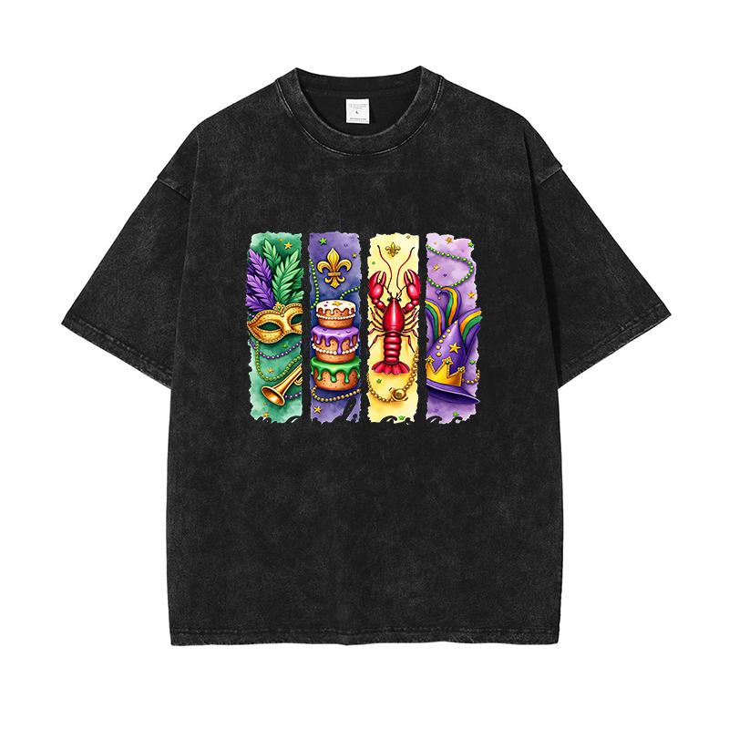 Oversized Mardi Gras Graphic Washed T-Shirt Summer Cotton Carnival Print Tees Holiday Vintage Street Party Man Clothes