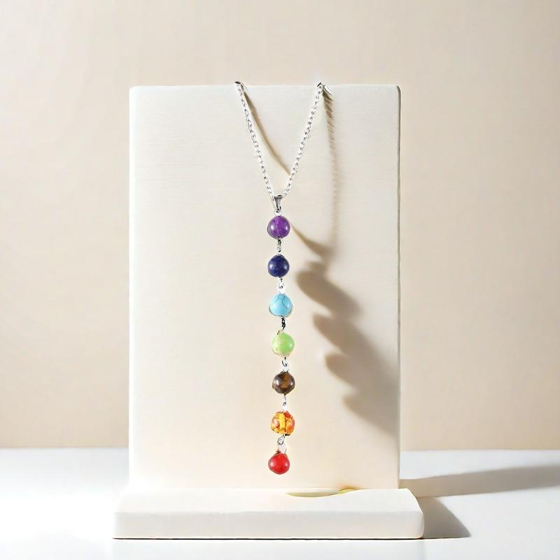 Collier Pendentif en Pierre Naturelle Sept Couleurs pour Femmes - Chaîne de Cou Élégante pour le Yoga et Accessoire de Clavicule
