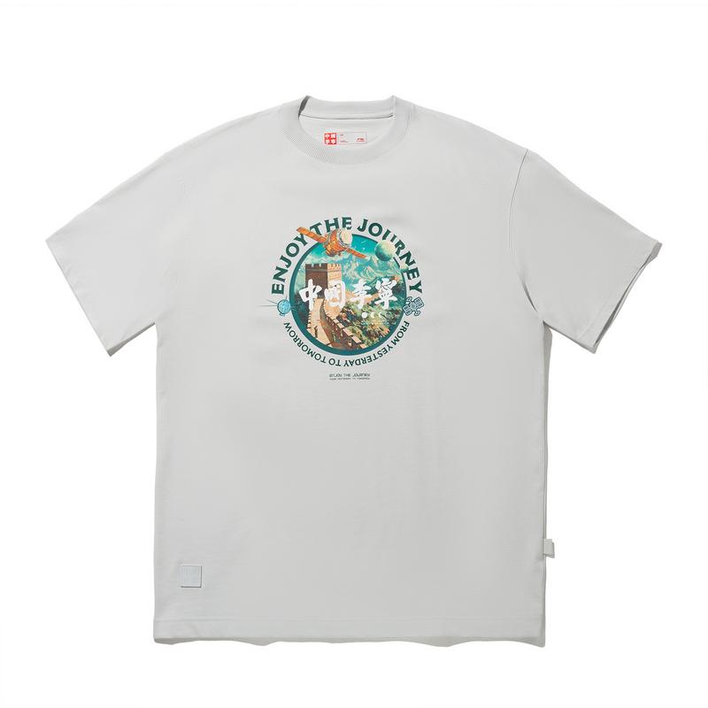 T-shirt Unisexe à Manches Courtes Ample Li Ning Revive Comfort Hauts Gris Goutte d'Eau AHSW981-3