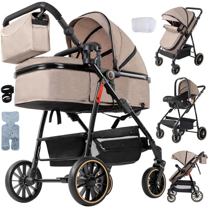 Poussette 3 en 1 Bébé Combinée Pliable 1 Clic Réversible Face Parent/Monde Cadre Aluminium Léger Confort Citadine Compacte