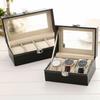 Boîte à Montres en Cuir PU 2/3/6/12 Grilles Support d'Exposition Boîte de Rangement Noire Boîte de Rangement en Verre pour Bijoux