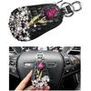 Support de clé de voiture Fleur en cuir Étui de rangement Porte-clés en cristal Housse de clé Accessoires de voiture